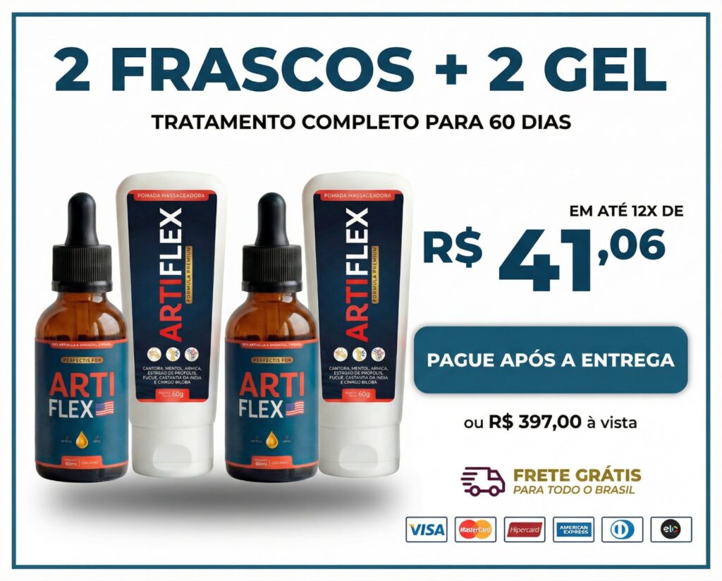 O Artiflex é eficaz no tratamento de várias condições que causam dores crônicas, como artrite reumatoide, artrose, bursite, gota, dores nas costas, ciática e tendinite. Ele ajuda a eliminar a inflamação, aliviar dores e regenerar as articulações e cartilagens.